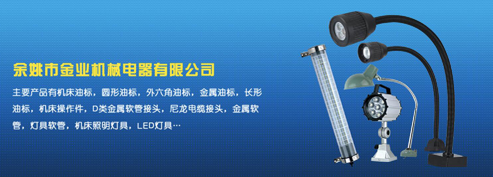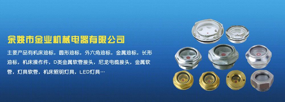 余姚市金業(yè)機械電器有限公司主要產(chǎn)品有機床油杯,圓形油標(biāo),外六角油標(biāo),金屬油標(biāo),長形油標(biāo),機床操作件,D類金屬軟管接頭,尼龍電纜接頭,金屬軟管,燈具軟管,機床照明燈具,LED燈具,DGT型線路軟管防護套,TL型鋼制電纜手軌,電纜尼龍拖鏈,可調(diào)塑鋼冷卻管等產(chǎn)品,規(guī)格齊全,全部自制。望國內(nèi)外客戶前來考察:共同發(fā)展…